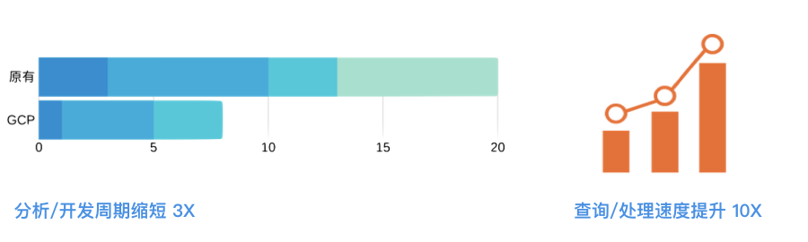 使用 GCP 的数据分析平台,分析开发周期缩短 3 倍,查询处理速度提升 10 倍,木瓜移动项目进度也实现大幅度提高。