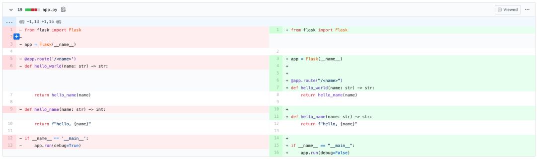 from flask import Flaskapp = Flask(__name__)def hello_world(name: str) -> str:return hello_name(name)def hello_name(name: str) -> int:return f"hello, {name}"if __name__ == '__main__':app.run(debug=True)