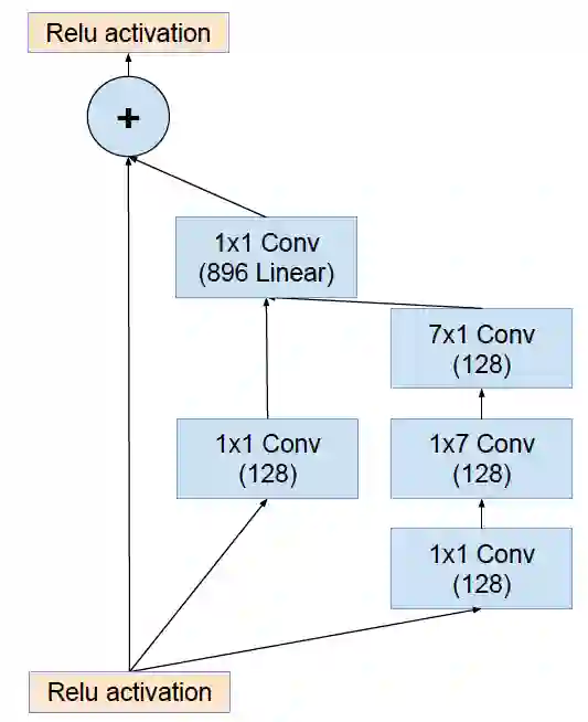同时,ResNet 的成功,也说明了 residual connection 的有效性,所以为Inception 模块引入了 residual connection,得到 Inception-ResNet v1 和Inception-ResNet-v2,前者规模较小,和 Inception v3 相当,后者规模较大,和 Inception v4 规模相当。residual 结构地 Inception 模块如下所示:
