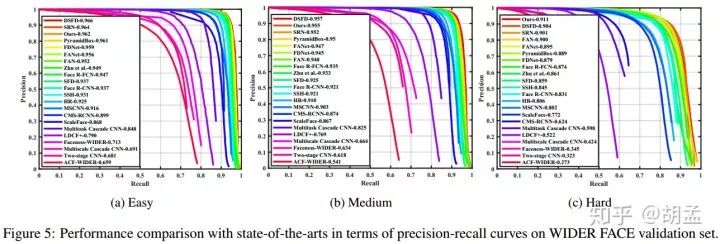 5个方案在wider face上使用相同的训练、测试策略,并在val set上测试,得到的结论如下: