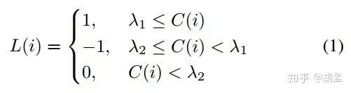 λ1=0.6、λ2=0.4:预定义阈值,1:正样本anchor,0:负样本anchor,-1:未被gt bbox匹配的anchor,训练阶段弃用;
