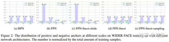 从fig 2中可知不同检测算法中,各个尺度anchor中正负样本数所对应的比例,对应的结果如table 1,结论如下: