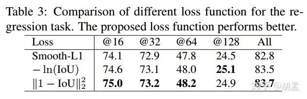 对比smooth-L1 loss,新的损失函数直接优化的IoU ratio本身,这也是与我们按照IoU计算mAP的评估标准保持一致的(可参照IoU-Net),文中提到UnitBox中IoU loss function = - ln(IoU),但当IoU = 1时,UnitBox中IoU损失函数得到的梯度不为零(non-zero gradient,画个ln(x)函数图就明白了),但IoU least square loss不会,得到zero gradient,起码网络收敛也会更稳定;