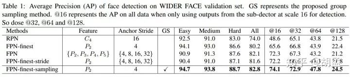 分析影响人脸检测性能的因素,消融实验证明group sampling的性能,并基于FPN finest-layer在FDDB、wider face上取得了sota;