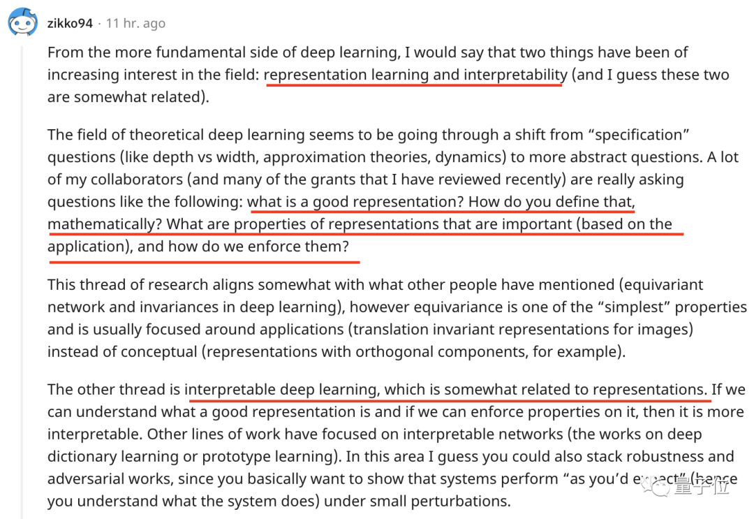 也有人认为表征学习和可解释性 (interpretability)越来越受到关注。