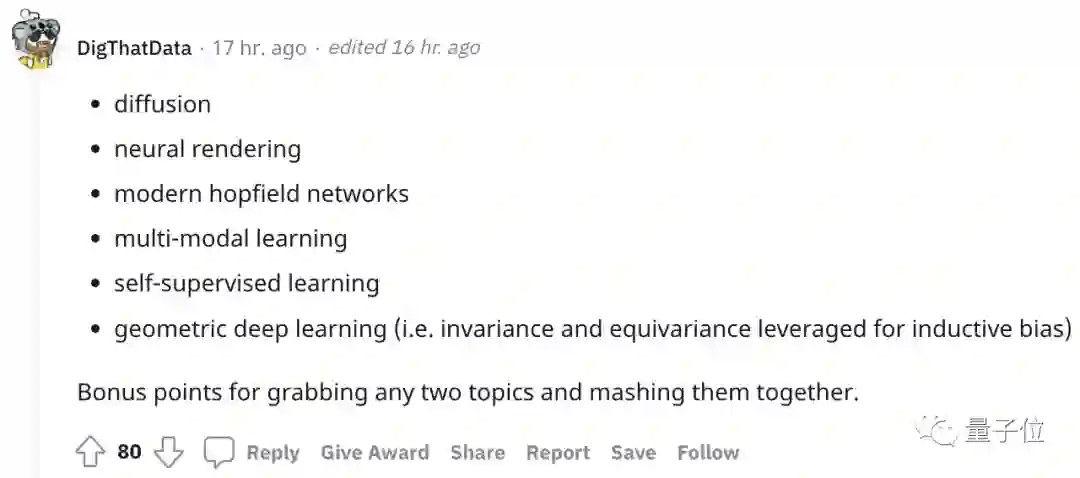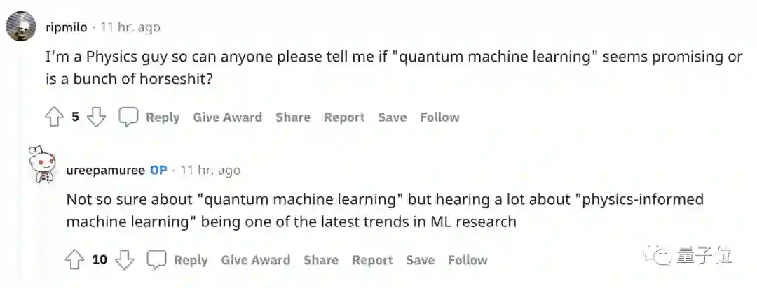 有意思的是,评论区有位提名“量子机器学习”的,引来了一位搞物理的,真诚向搞AI的发问:
