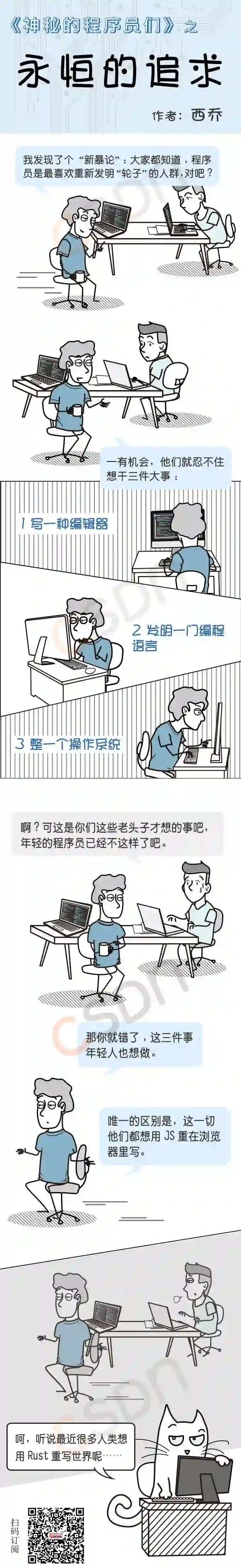 在《新程序员004》的《神秘的程序员们》栏目中,我们的漫画作者西乔便把目光瞄准了程序员们永恒的追求。