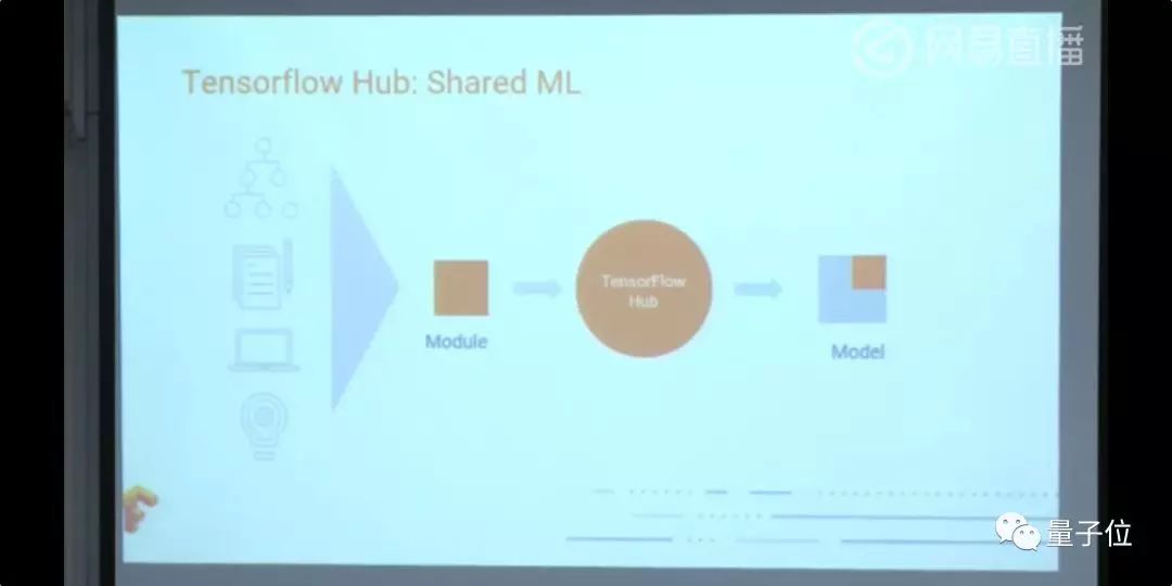 为了更好的促进模型共享,我们发布了 TensorFlow Hub (TF Hub)。例如,一个人设计机器学习模型,他可以从 GitHub 中找到不同的模型,进行组合,从而形成更强大的能力。