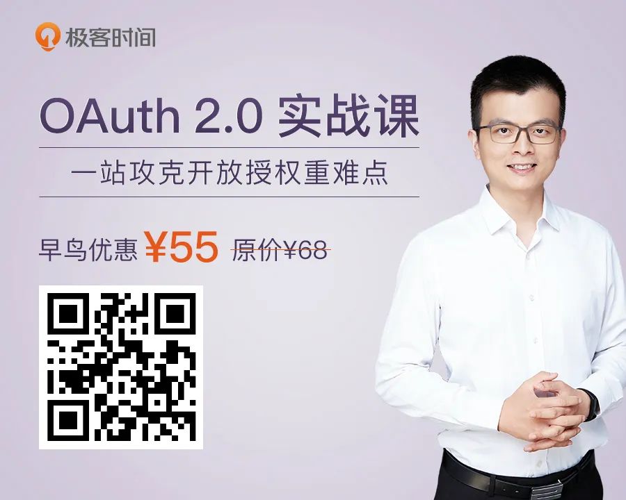 基础篇,OAuth 2.0 必备基础知识,介绍授权码许可类型的流程,并在此基础上,讲解资源拥有者凭据许可、隐式许可、客户端凭据许可,这三种常见许可类型的原理,及如何根据实际场景,选择适合的授权类型。