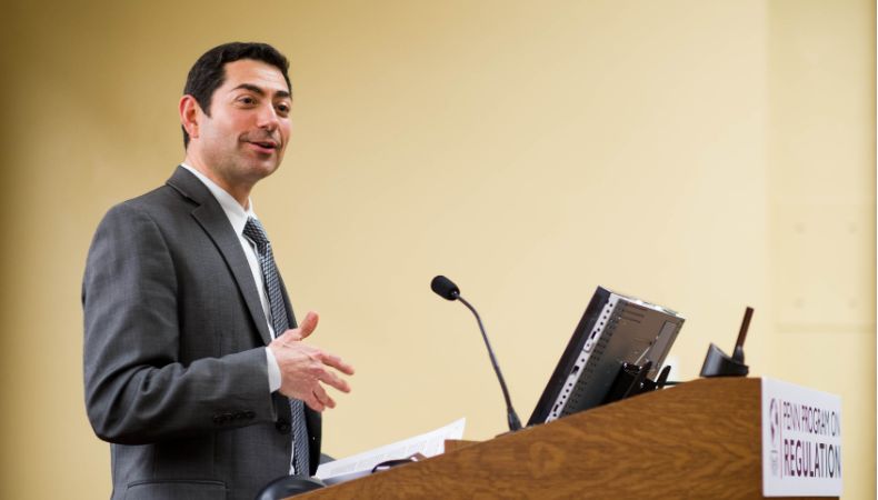 (从左至右:斯坦福法学院教授Daniel E. Ho,David Freeman Engstrom和加州最高法院大法官Mariano-Florentino Cuéllar)