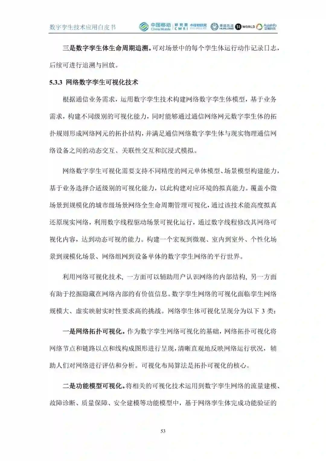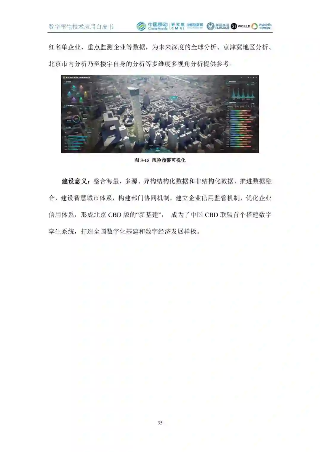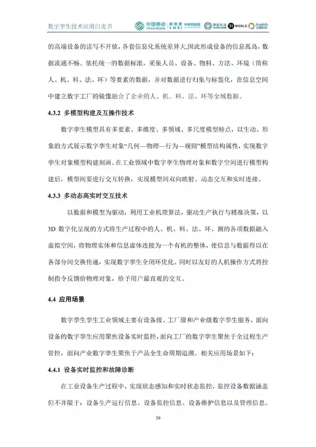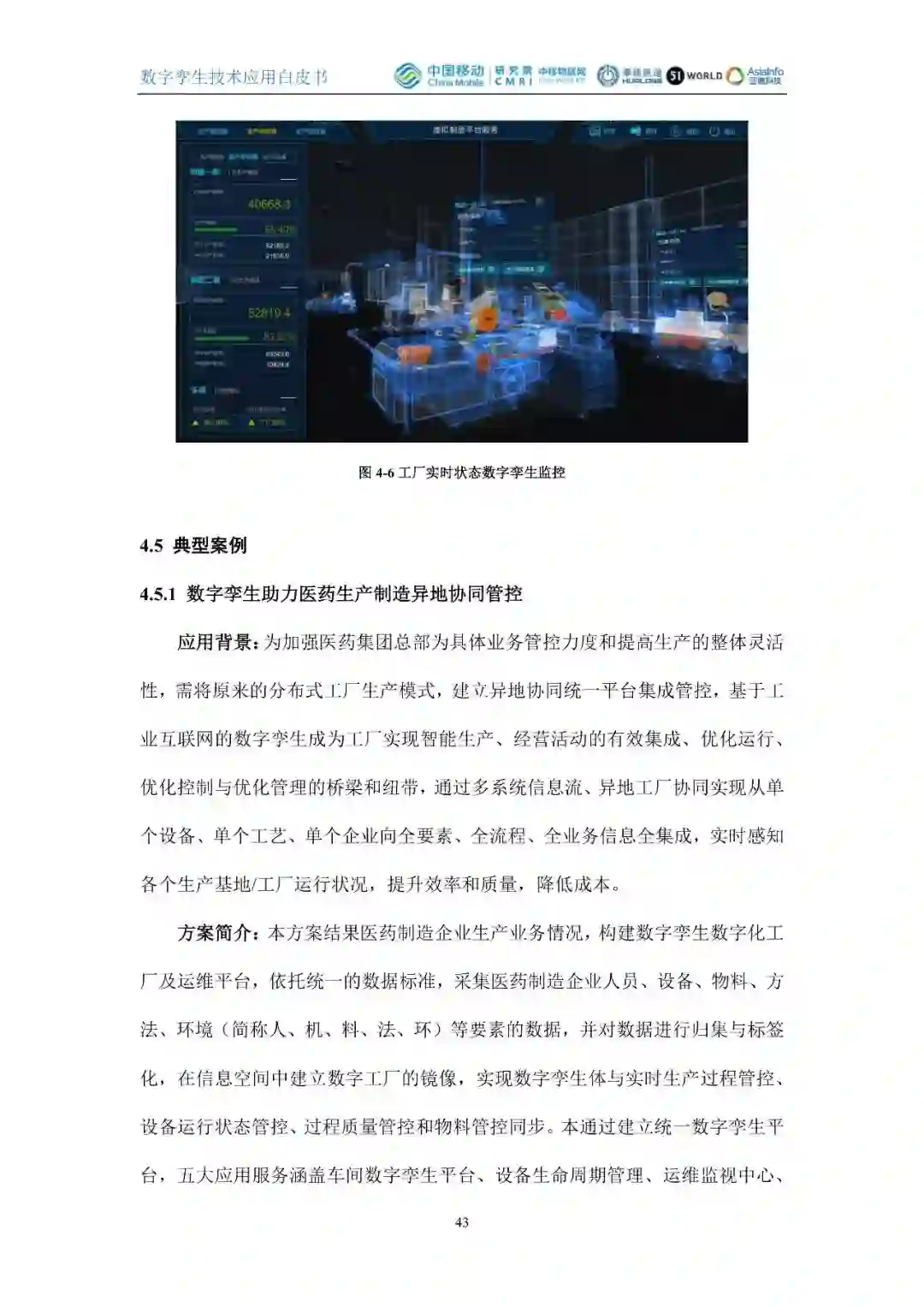 《数字孪生技术应用白皮书(2021)》聚焦数字孪生关键技术和行业应用发展,梳理数字孪生整体发展情况,深入分析技术体系和典型垂直行业应用场景,旨在为产业界在规划实施数字孪生相关应用时提供参考借鉴,助力数字孪生技术演进和产业发展。