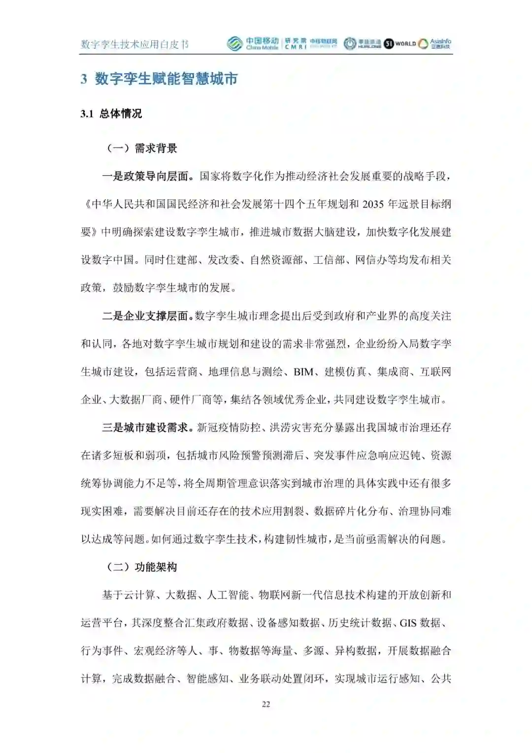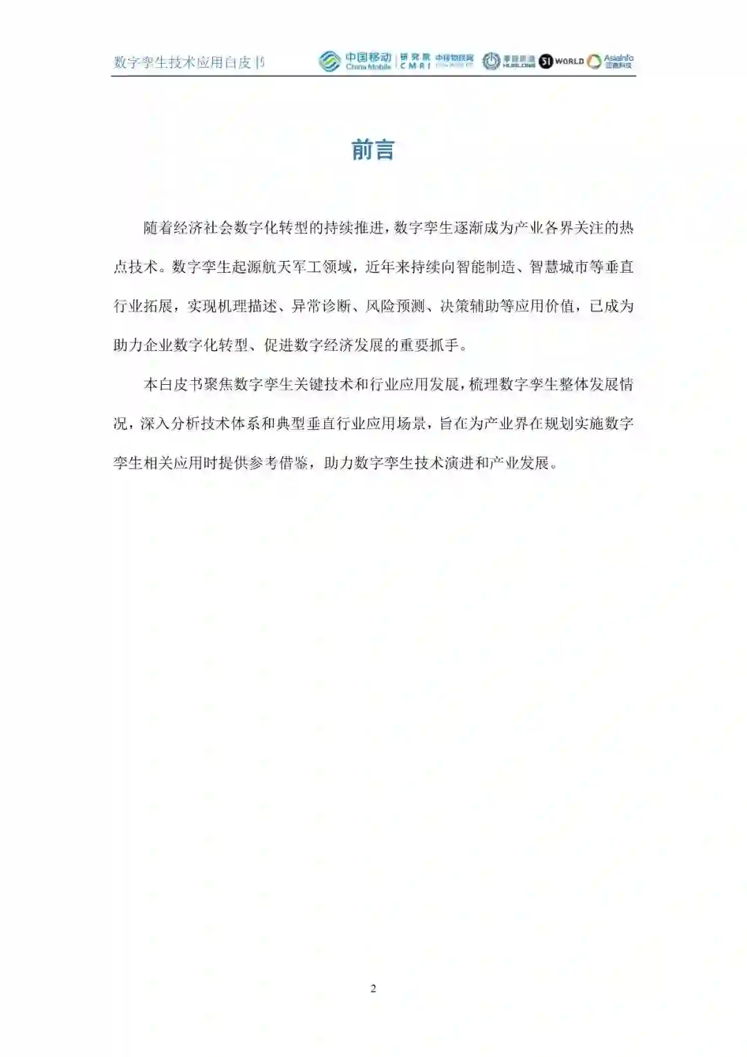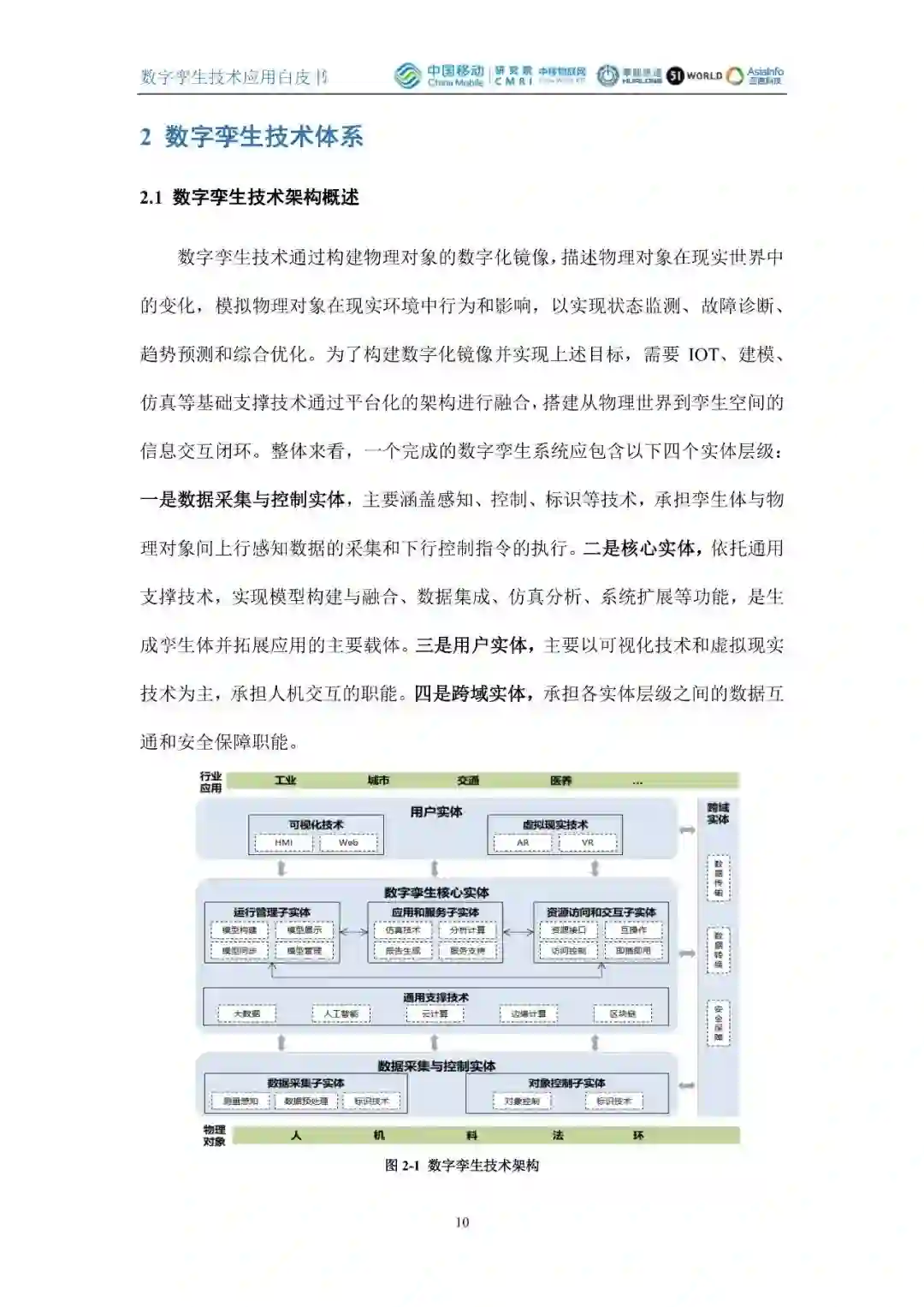 随着经济社会数字化转型的持续推进,数字孪生逐渐成为产业各界关注的热点技术。数字孪生起源航天军工领域,近年来持续向智能制造、智慧城市等垂直行业拓展,实现机理描述、异常诊断、风险预测、决策辅助等应用价值,已成为助力企业数字化转型、促进数字经济发展的重要抓手。