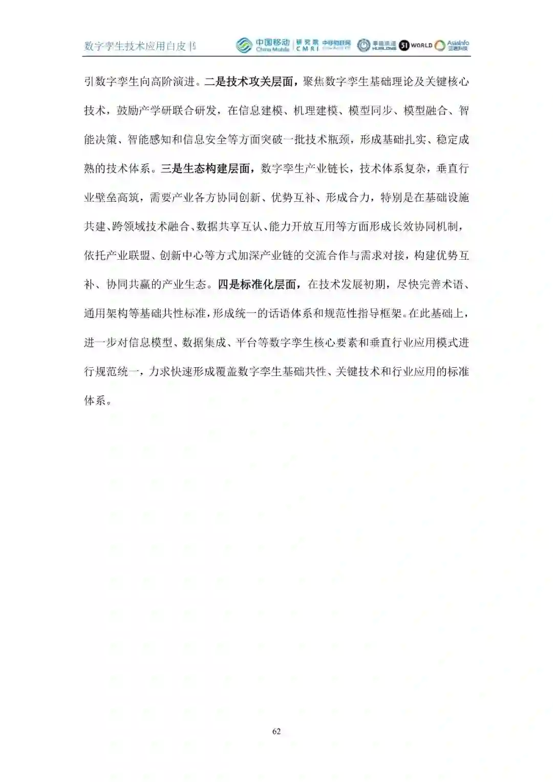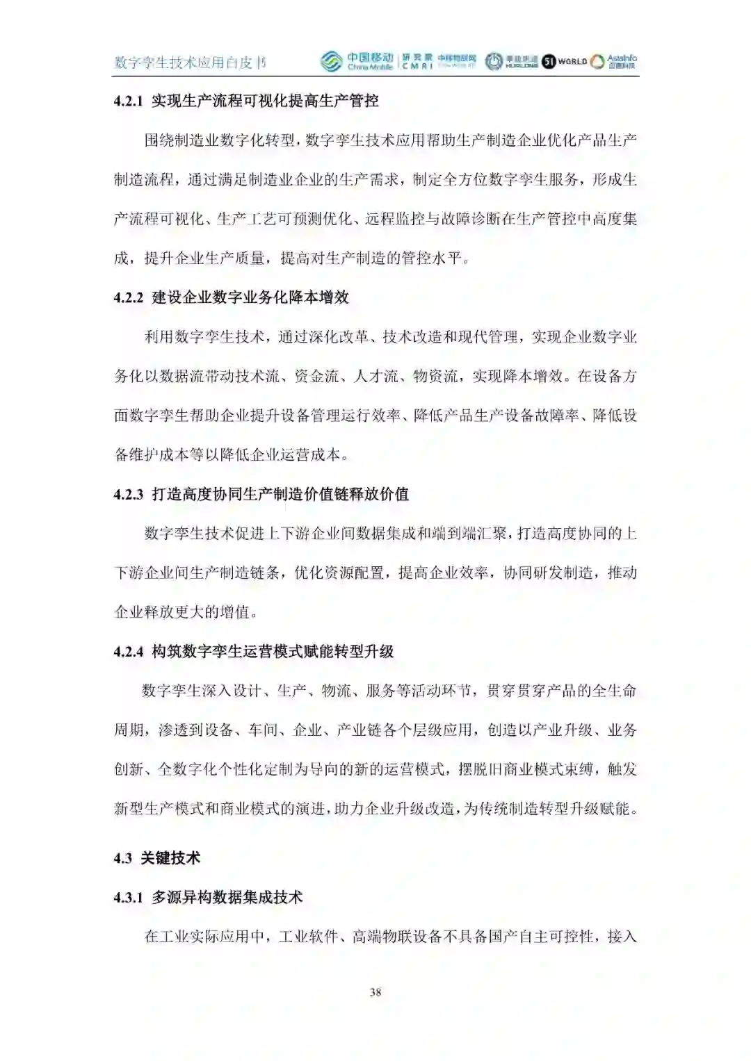 二是技术攻关层面,聚焦数字孪生基础理论及关键核心技术,鼓励产学研联合研发,在信息建模、机理建模、模型同步、模型融合、智能决策、智能感知和信息安全等方面突破一批技术瓶颈,形成基础扎实、稳定成熟的技术体系。
