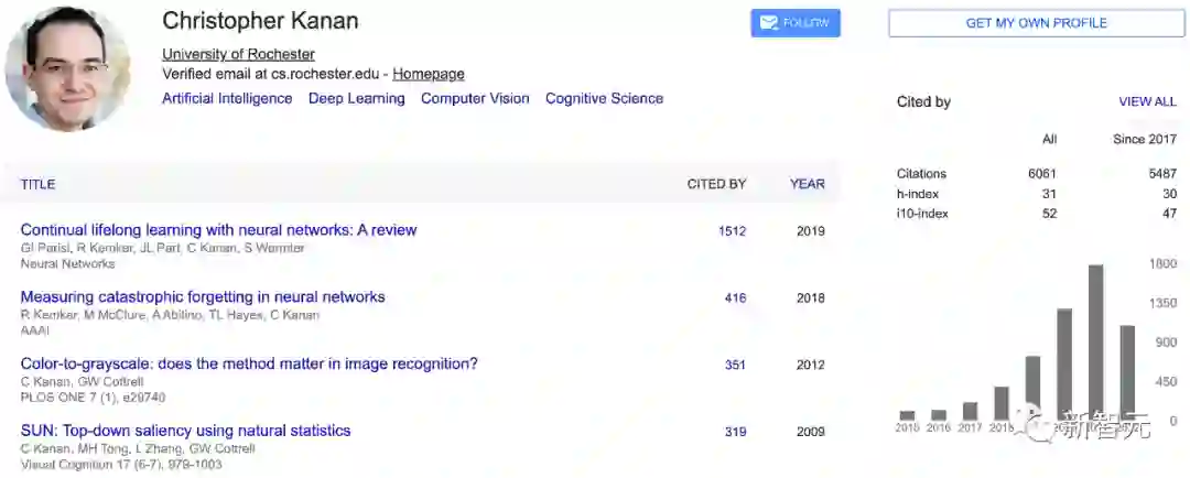 Christopher Kanan是罗切斯特大学计算机科学的终身副教授。主要的工作方向是深度学习的基础研究,包括持续学习,人工智能的偏见,医学计算机视觉,以及语言引导的场景理解。