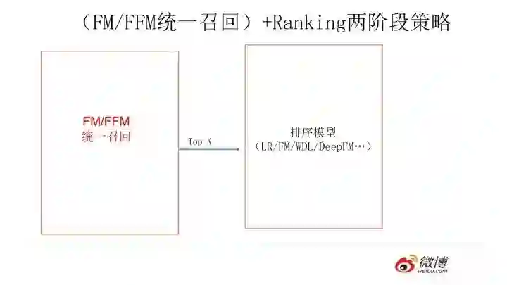 上文简单叙述过,用排序模型做召回的特点。其实,你可以这么理解:把FM/FFM等模型用来做召回,看做原先的“召回+排序”两阶段过程中的第二个过程前置,放到召回阶段来做排序。它本质上其实就是希望同时将两阶段过程用同一个阶段吸收掉。