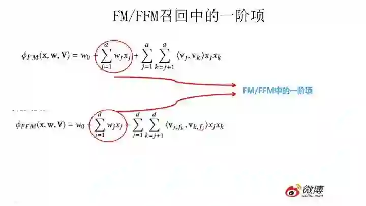 微博在业务中的实践表明,如果采取FM召回模型,对于有些应用来说,一阶项对于最终效果有明显影响,所以在用FM/FFM做召回的时候,是需要将一阶项考虑进去的,这可能是个别一阶特征比较重要导致的。我们在Criteo数据集合的实验结果也证明:如果是FM模型,一阶项是有用的,去掉一阶项,只保留二阶项,AUC大约会掉1个绝对百分点,对于CTR来说,这个差距还是很明显的;而如果是采用DeepFM模型,则FM部分是否保留一阶项对最终结果没有什么影响,这说明DNN的隐层有效地将一阶项的作用吸收掉了。(这一小节也是最近新加入的,感谢微博机器学习团队黄通文同学补充的Criteo实验数据,以及马柏樟/邸海波同学在微博正文页推荐业务中测试FM统一召回模型时,提供的业务数据表现和一些建议)