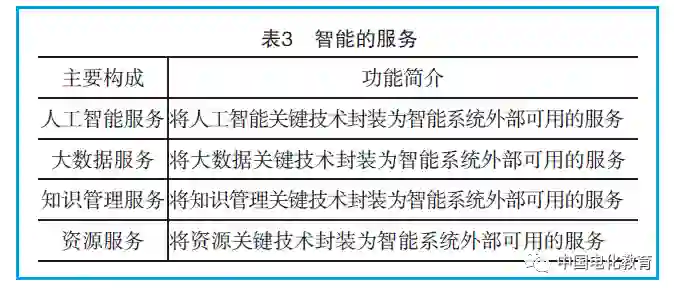 2.从技术的角度来看,通过对智能技术的封装与定制,使各类教育应用产品能够迅速集成交互界面友好、接口简单易用的教育智能技术与服务,其主要功能包括人机交互、自然语言理解、知识图谱、生物特征识别等具体领域技术等,借助该类服务可以快速提供智能能力,即“智能算法”。
