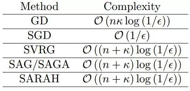 研究员通过结合 SVRG 和 SAGA 的一些思想,提出一个新的方法,叫做 SARAH。仅是内层迭代步长不同于 SVRG,SARAH 的公式如下