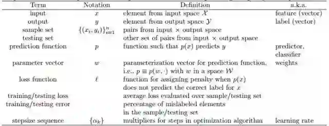 本篇论文的目的是给出与机器学习领域相关的一些关键问题和研究问题的概述。考虑到涉及运筹学领域的知识,我们假设读者熟悉基本的优化方法理论,但是仍将引入在广义机器学习领域使用的相关术语和概念,希望借此促进运筹学专家和其它贡献领域的人员之间的沟通。为了实现这一目的,我们在词汇表 1 中列出了本论文将介绍和使用的最重要的术语。