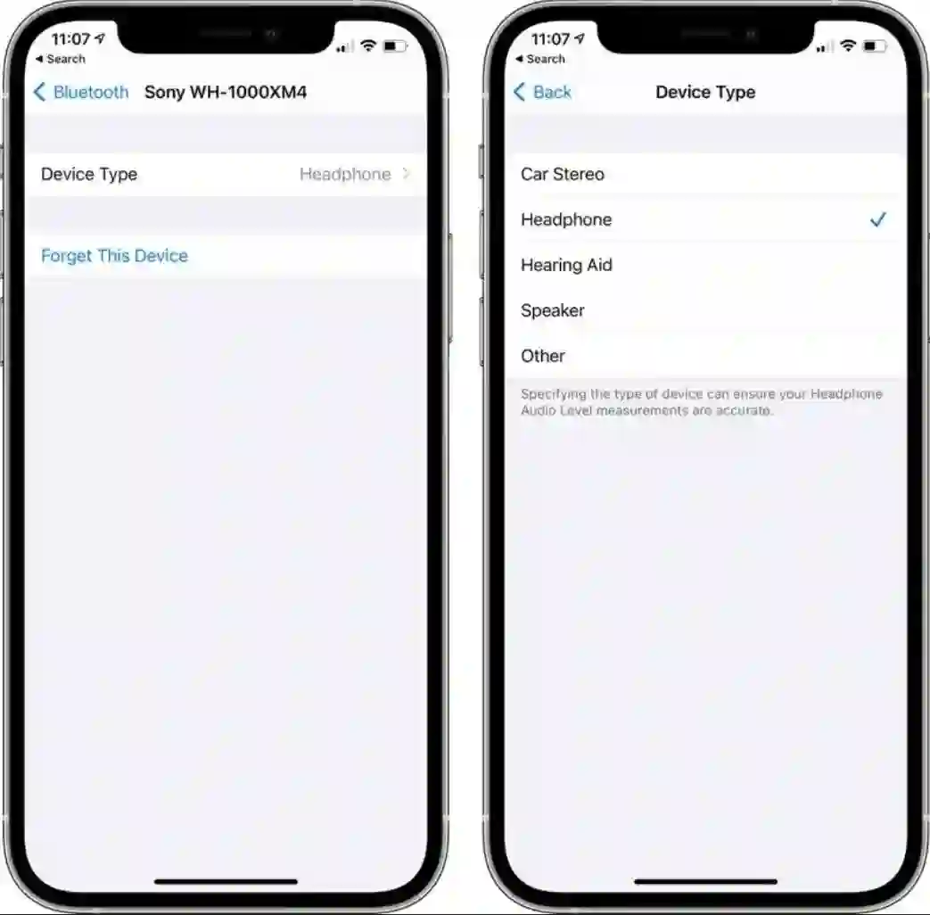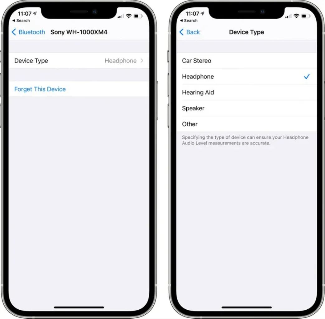 据外媒报道,iOS 14.4 beta 2 出现了一项全新功能,可为第三方蓝牙连接的音频设备指定设备类型,以便 iPhone 正确进行耳机音频水平测量。据悉,苹果会跟踪测量耳机音频水平,当音乐播放的音量有可能损害听力健康时,系统就会发出警报提醒用户降低音量。