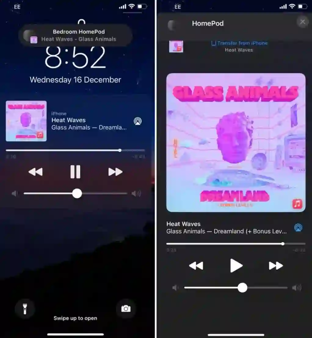 此前版本已经实装的 HomePod mini 与 iPhone 11/12 交互的特性,在此次版本得以全面铺开。当内置 U1 芯片的 iPhone 把正在播放的多媒体投射至 HomePod mini 时,会有视觉、音频和触觉效果。具体来说,当 iPhone 11/12 不断靠近 HomePod mini 时,系统 UI、震动反馈幅度等都会出现改变,这是利用了 U1 芯片感知位置关系的特性所形成的交互。
