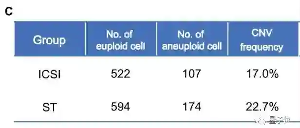 数据显示,ST囊胚中非整倍体细胞的百分比与对照组比例为22.7%对17.0%,二者几乎相当。这表明,ST操作不会增加囊胚中非整倍体细胞的百分比。