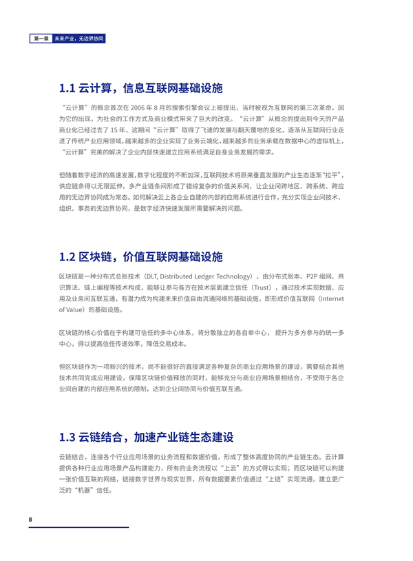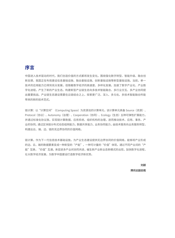 白皮书聚焦于构建下一代信息技术基础设施“链计算”,通过云计算与区块链的结合,构建信任价值网络,实现数据、应用、业务、生态的无边界协同,并形成网络型基础设施,获取巨大的规模效应、网络效应和溢出效应。