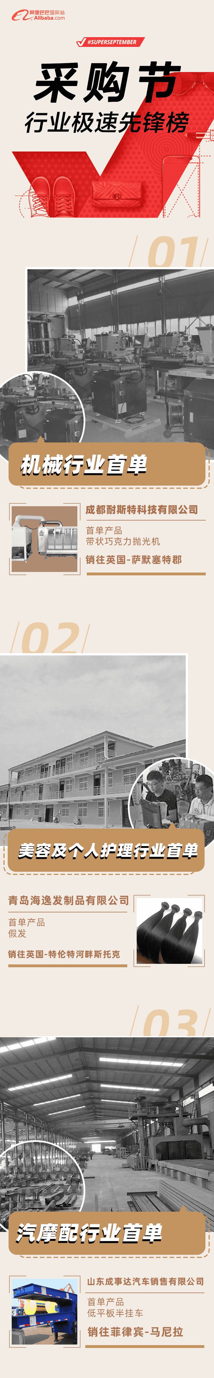 在阿里国际站对外官宣的“采购节各行业首单”中,来自中国卖家的产品琳琅满目,各有特色,涵盖了几乎是各行各业: