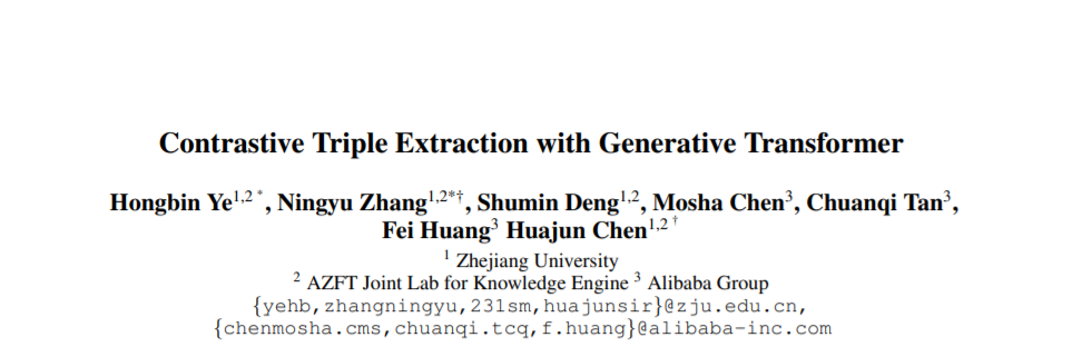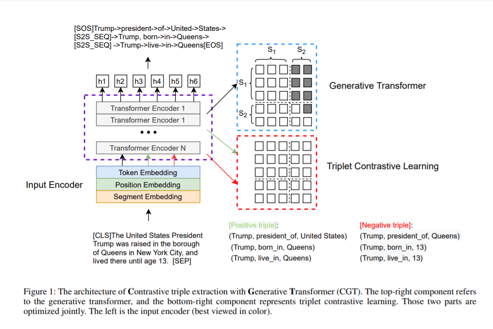 在自然语言处理和知识图构造的信息提取中,三次提取是必不可少的任务。在本文中,我们将重新审视用于序列生成的端到端三重提取任务。由于生成三元组提取可能难以捕获长期依赖关系并生成不忠实的三元组,因此我们引入了一种新颖的模型,即使用生成Transformer的对比三元组提取。具体来说,我们介绍了一个共享的Transformer模块,用于基于编码器-解码器的生成。为了产生忠实的结果,我们提出了一种新颖的三重态对比训练对象。此外,我们引入了两种机制来进一步提高模型性能(即,批量动态注意遮罩和三级校准)。在三个数据集(即NYT,WebNLG和MIE)上的实验结果表明,我们的方法比基线具有更好的性能。