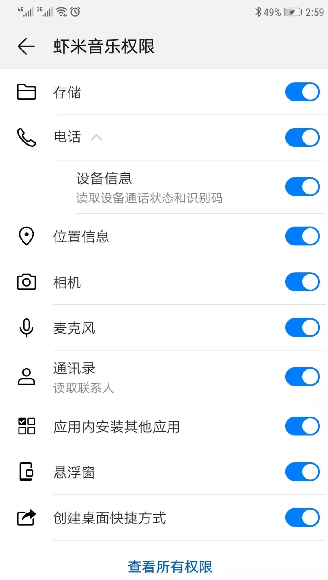 而在询问虾米音乐客服为何虾米App在安卓客户端需要读取用户的电话硬件及存储卡信息时,客服并没有直接回答,只表示用户可以自行关闭这些权限。支付宝客服则表示,“未遇到过这种情况。”