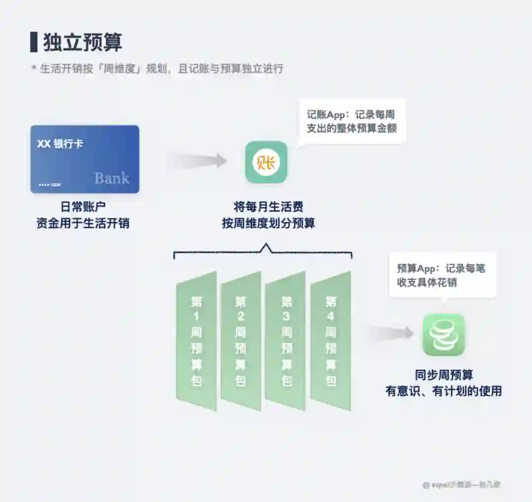 独立预算:日常生活开销以「周维度」进行预算规划,有意识、有计划消费