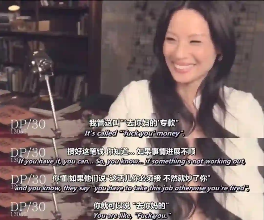 当时看到这段非常感同身受,「能不受打扰的工作,能慷慨诚实的做事,能不靠他人独立生活」,在这个层面,钱虽然无法带给人直接的感官刺激,但却是一种真真实实的安全感。就像刘玉玲的 「F**k you 基金」,使得你无论在一个什么样的境遇,都有一个果断转身离开的保障。