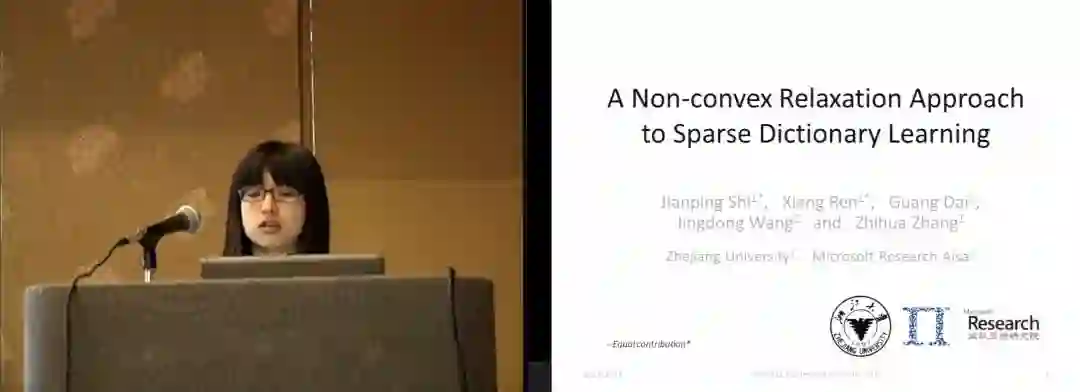 据不完全统计,石建萍可能是当时国内第一个论文入选CVPR Oral的本科生。她研究的课题是为A Non-Convex Relaxation Approach to Sparse Dictionary Learning。Sparce Dictionary Learning在当时还是比较主流的研究课题(以基本元素的线性组合以及这些基本元素本身的形式找到输入数据的稀疏表示,也称为稀疏编码)。不过,深度学习到来后,这些方法都没有容身之处了。
