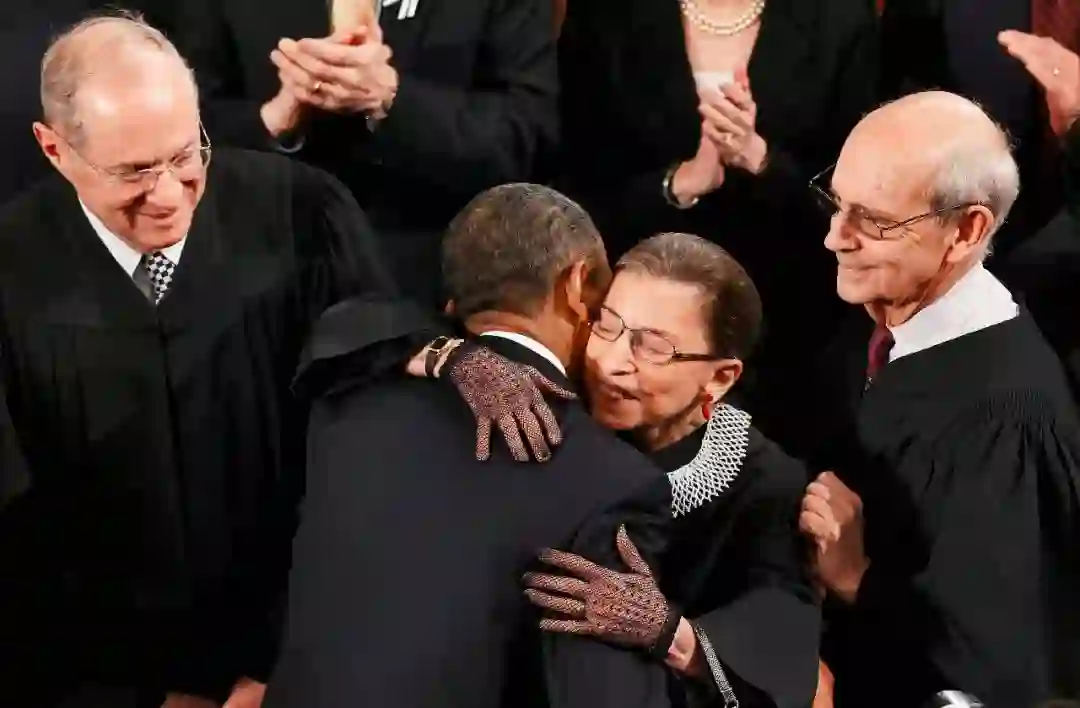 2011年1月25日,时任美国总统奥巴马在国会发表国情咨文前,与金斯伯格拥抱致意 (图 | 视觉中国)