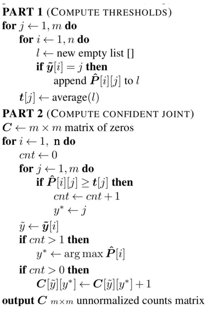 import cleanlab# 输入# s:噪声标签# psx: n x m 的预测概率概率,通过交叉验证获得# Method 3:Prune by Class (PBC)baseline_cl_pbc = cleanlab.pruning.get_noise_indices(s, psx, prune_method='prune_by_class',n_jobs=1)# Method 4:Prune by Noise Rate (PBNR)baseline_cl_pbnr = cleanlab.pruning.get_noise_indices(s, psx, prune_method='prune_by_noise_rate',n_jobs=1)# Method 5:C+NRbaseline_cl_both = cleanlab.pruning.get_noise_indices(s, psx, prune_method='both',n_jobs=1)