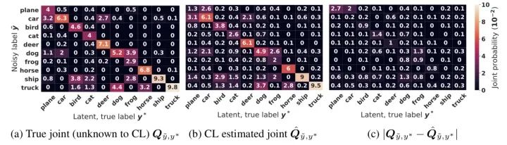看到这里,也许你会问为什么要估计这个联合分布呢?其实这主要是为了下一步方便我们去clean噪声数据。此外,这个联合分布其实能充分反映真实世界中噪声(错误)标签和真实标签的分布,随着数据规模的扩大,这种估计方法与真实分布越接近(原论文中有着严谨的证明,由于公式推导繁杂这里不再赘述,有兴趣的同学可以详细阅读原文~,后文的图7也有相关实验进行证明)。