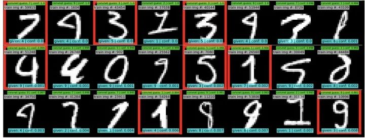 我们来看看cleanlab在MINIST数据集中找出的错误样本吧,是不是感觉很牛~
