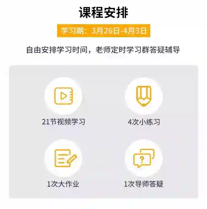 2.课程购买后1年内可不限次回放,报名后未在学习期内完成学习,仍可继续观看视频