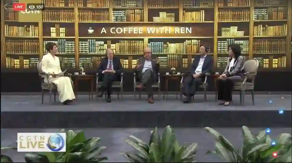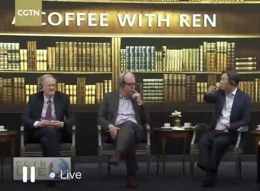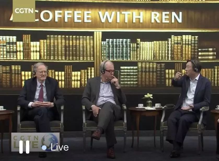 6月17日下午两点,华为创始人兼CEO任正非在深圳与《福布斯》著名撰稿人乔治·吉尔德和美国《连线》杂志专栏作家尼古拉斯·尼葛洛庞蒂进行了长达100分钟的对谈,对谈由中国国际电视台(CGTN)旗下节目《世界观察》的主持人田薇主持,参与对谈的还有华为的高级副总裁陈黎芳。