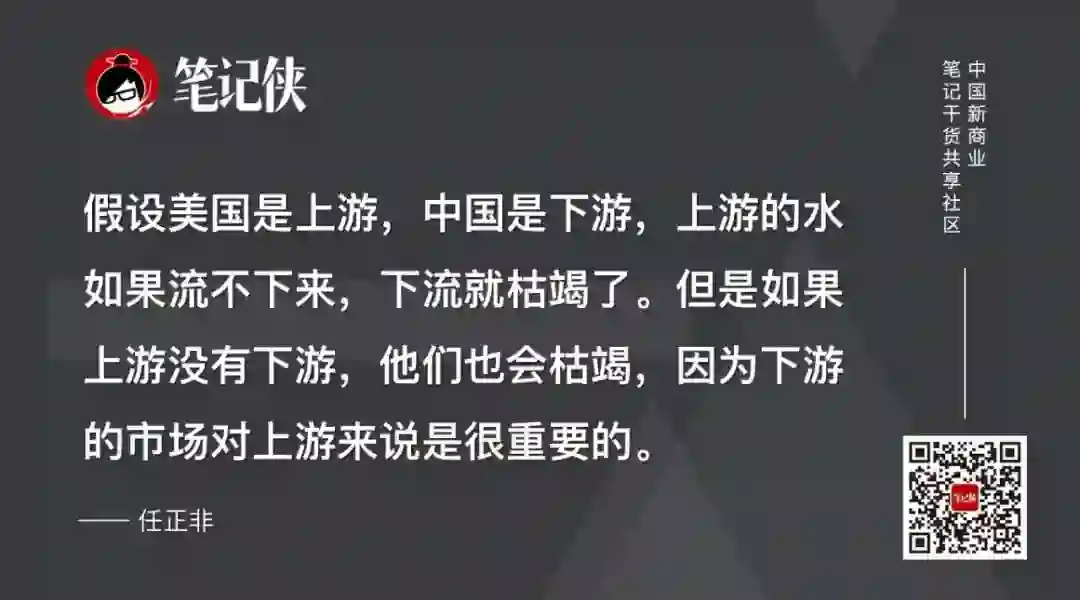 假设美国是上游,中国是下游,上游的水应该流到下流来,如果流不下来,下流就枯竭了。但是如果上游没有下游,他们也会枯竭,因为下游的市场对上游来说是很重要的。