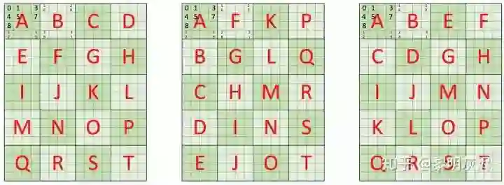 图中字母标记的是全局性的工作顺序,即输出数据中外层循环迭代方式。左侧小图是常规的行优先遍历方式,中间小图是列有限的遍历方式。这两者的区别是 𝑀 和 𝑁 两个维度的循环哪个在最外层。