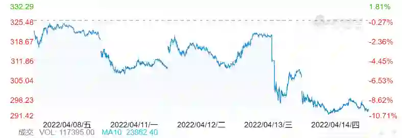 从近5日股票波动图可知,新思科技股票近乎一直在下跌,昨日已跌至近期最低点293.58。