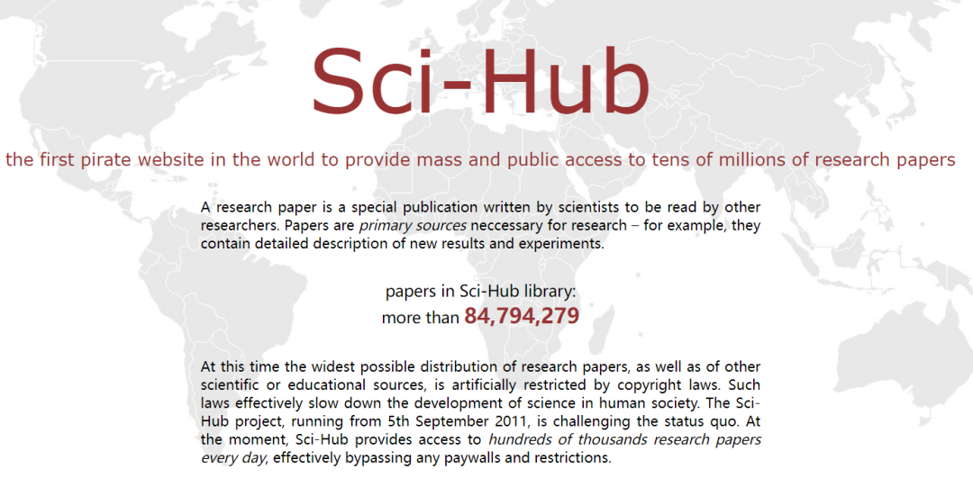 Sci-Hub成立于2011年9月,该网站致力于免费向全世界的用户提供世界各地学术期刊论文,被称为「科学版海盗湾」