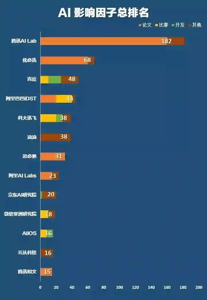 「AI 影响因子」是雷锋网学术频道 AI 科技评论旗下数据库项目,旨在呈现国内企业研究院学术&开发实力,为高校学生及从业者提供在会议/期刊论文、数据集比赛及开发项目三大领域的横向对比参考。此外,AI 科技评论也整合了诸如与高校实验室合作、学术会议赞助等企业活动,尝试为读者们提供一个全面的数据平台。更加完整的介绍可点击查看「AI 影响因子是什么?」