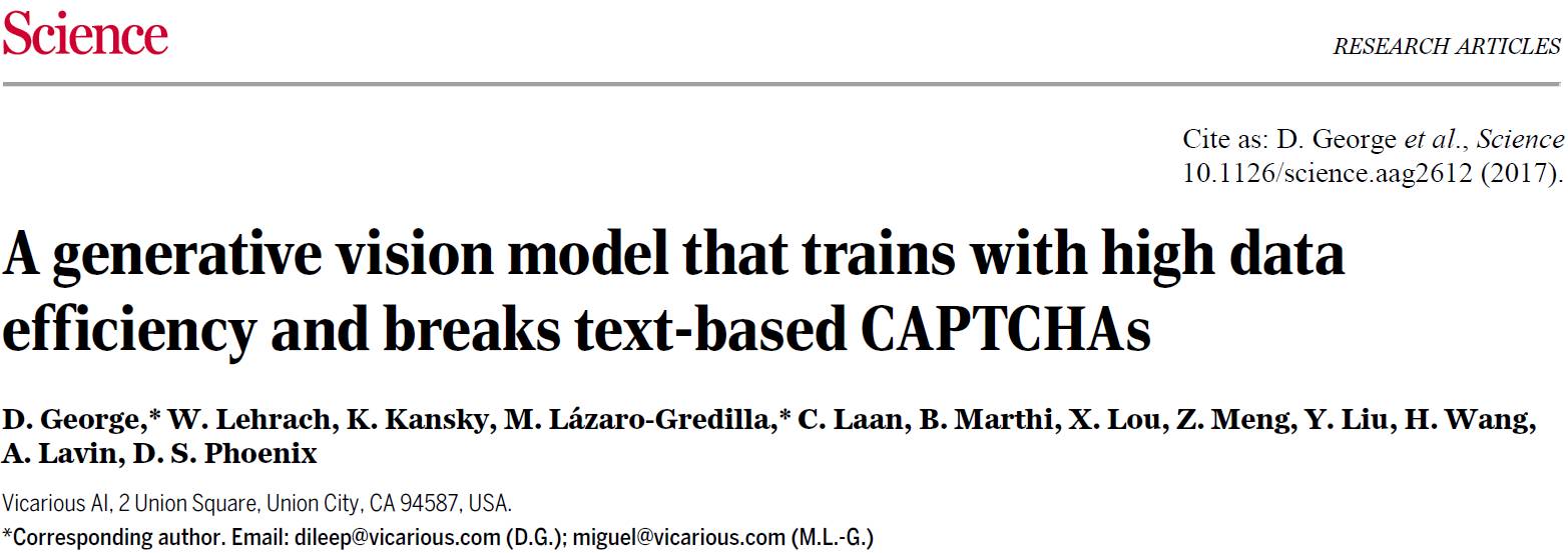 论文:A generative vision model that trains with high data efficiency and breaks text-based CAPTCHAs