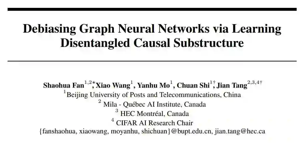 近日,北邮GAMMA Lab和Mila合作的论文“Debiasing Graph Neural Networks via Learning Disentangled Causal Substructure”NeurIPS2022接收。该论文主要试图回答, 在偏差信息和因果信息同时存在时图神经网络更倾向于学习哪方面信息?如何从具有严重偏差的图数据中解耦并且利用因果子结构做预测?并且如何有效地从定量以及定性两方面评测因果图神经网络方法?带着这几个问题,我们详细介绍该论文的核心思想与对应技术细节。*