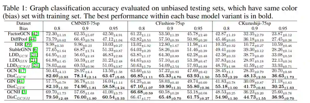 大多图神经网络(GNNs)通过学习输入图和标签之间的相关性来预测不可见图的标签。然而,通过一个在有严重偏差训练图上的图分类探究实验,惊奇的发现,即使因果相关性一直存在,GNN还是更倾向于利用虚假相关性做预测。这意味着目前在这样有偏差数据上训练得到的图神经网络具有很差的泛化性能。通过以因果视角分析该问题,可以发现解耦和去相关因果和偏差隐变量对于去偏差是至关重要的。受启发于此,我们提出了一个通用的图神经网络解耦框架以学习因果和偏差子结构。具体而言, 我们设计了一个参数化的边掩码生成器来显示的将输入图划分为因果和偏差子图。然后训练两个由因果/偏差感知损失函数监督的GNN模块以编码因果和偏差子图的信息到对应的表示中。给定了解耦的表示,我们合成反事实无偏样本以进一步去除因果和偏差变量之间的相关性。此外, 为了更好地基准测试严重偏差问题,我们构造三个新的数据集, 其有偏差可控制并且易于可视化和解释的特点。实验结果很好的证明了我们提出的方法比现有基线方法有优越的泛化性能。此外,由于学到的边掩码,提出的方法有吸引人的可解释性和可迁移性。