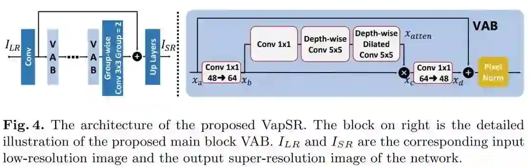 上图给出了所提VapSR架构示意图,延续了常规轻量方案的设计思路: